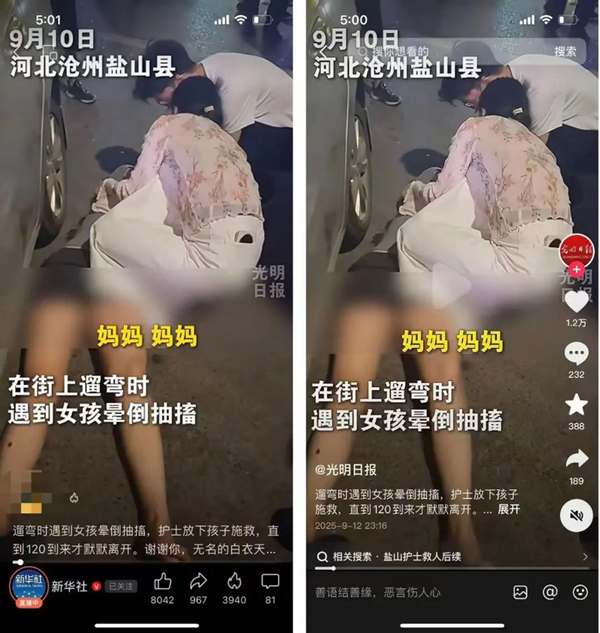 當河北鹽山縣千童大街傳來呼救聲,一名女子突然倒地,情況危急。鹽山縣人民醫院護士霍平,當時正抱著兩歲女兒與家人散步,聽到呼救后,她毫不猶豫沖向現場。